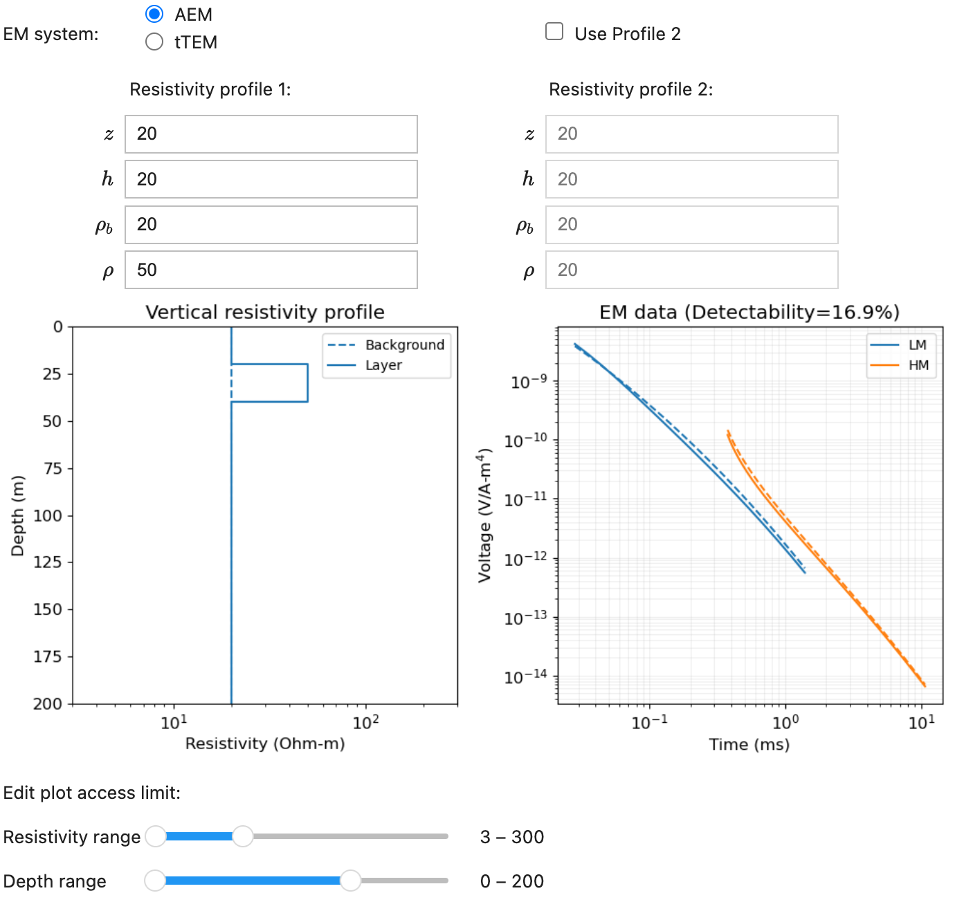 This app provides a capability to explore detectability of a target layer using an electromagnetic (EM) experiment. Detectability can be defined as